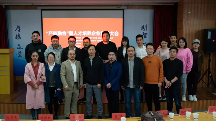 为深入贯彻落实国务院《国家长期教育改革和发展规划纲要(2010-2020年)》、《国家中长期人才发展规划纲要(2010-2020年)》、《国务院关于加快发展现代职业教育的决定》以及教育部关于高校转型发展的一系列文件、会议精神,实施科教兴国战略和人才强国战略,探索“产教融合,协同育人”职业教育改革。影视动画专业2020年将全面开展“3+3”的校企协同育人培养模式,专业邀请校外企业及领导来我校进行宣讲:有宁波思华年影视文化有限公司朱星光、宁波睿智影视传媒有限公司严绍根、宁波荧火虫影视文化传媒有限公司郑瀚、宁波多年以后有限公司胡泱东、宁波智绘影视传媒有限公司池建、宁波壹陆玖文化传媒有限公司袁志林、宁波越强文化传媒有限公司胡胜强、宁波亮剑互娱影视文化有限公司曹蕾、宁波时迈影视文化传播有限公司左戈、朴原文化发展有限公司张博豪、甬臻影视传媒有限公司丹尼11家企业的负责人。与会的人员还有全体影视专业教师、18级全体学生。