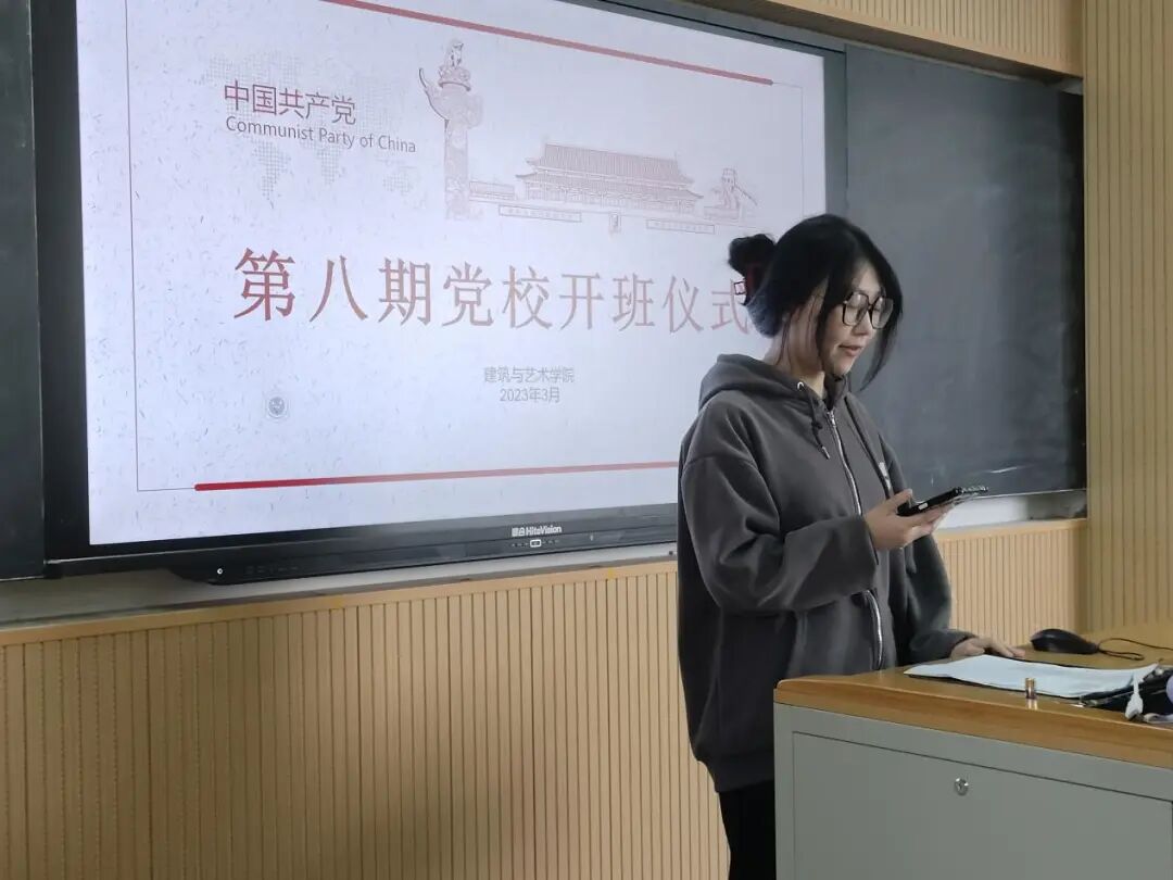为了加强党的思想和组织建设,为在思想上追求上进的青年学生搭建进一步成长的平台,培养党的后备军,建筑与艺术学院党支部于2023年3月22日下午在明德楼34B4隆重举行第八期党校开班仪式。